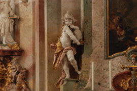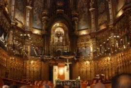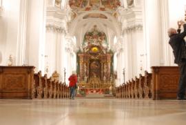 Der Chorraum der Basilika des Klosters mit der Madonnen-verehrung oben im Hintergrund.