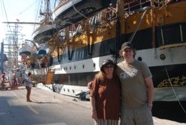 Im Hafen von Barcelona lagen einige große Segelschiffe, die an einer Regatta teilnahmen und abends offiziell begrüßt wurden.