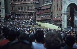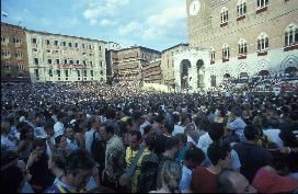 Massen auf der Piazza del Campo erwarten das Rennen