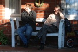 Vor der Ferienwohnung in der Herbstsonne: Kirsten und Christian