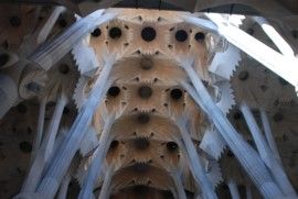 Innen ist das Hauptschiff riesig. Nur in Ansätzen ist zu erkennen, wie der Bau nach Vollendung einmal aussehen wird. Die Wirkung ist bereits jetzt außerordentlich. Die Ausstellung unterhalb der Kirche zeigt einige architektonische Ideen Gaudis, die in der Kirche verwirklicht werden.