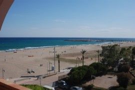 Blick vom Balkon des Gran Hotel Europe in Coma Ruga über die Costa Daurada. Breiter Strand mit feinstem Sand und wenigen Leuten. Sehr gepflegt! Und die Promenade ist in den letzten Jahren für fast 5 Millionen Euro neu gebaut worden. Eine super Inlinerpiste, breit genug für die allabendlich auftauchenden fliegenden Händler.