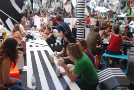 Biennale in Venedig. Blick in die Cafeteria, die mit einem Golden Löwen prämiert wurde. Zurecht.