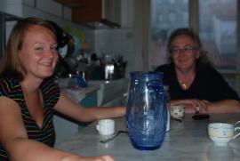 Nele mit Kirsten auf der Terasse von Seedorf 7, unserem Ferienhaus auf der Insel Poel.